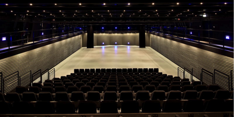- Espace modulable qui peut accueillir une conférence ou, grâce à ses gradins rétractables, un cocktail debout ou un dîner assis.